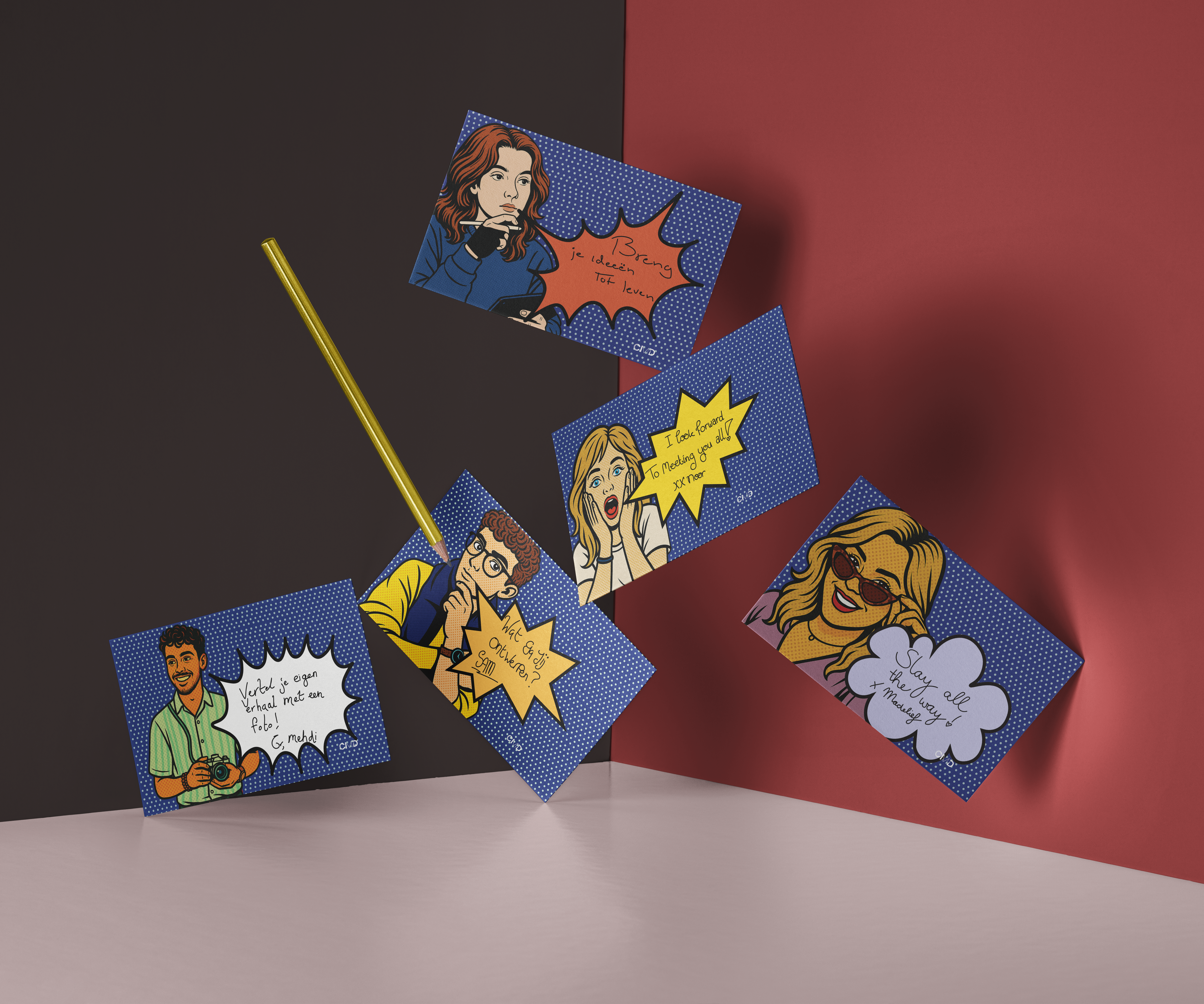 Designed promotional materials, personal cards, and systems for design, communication, and event coordination.